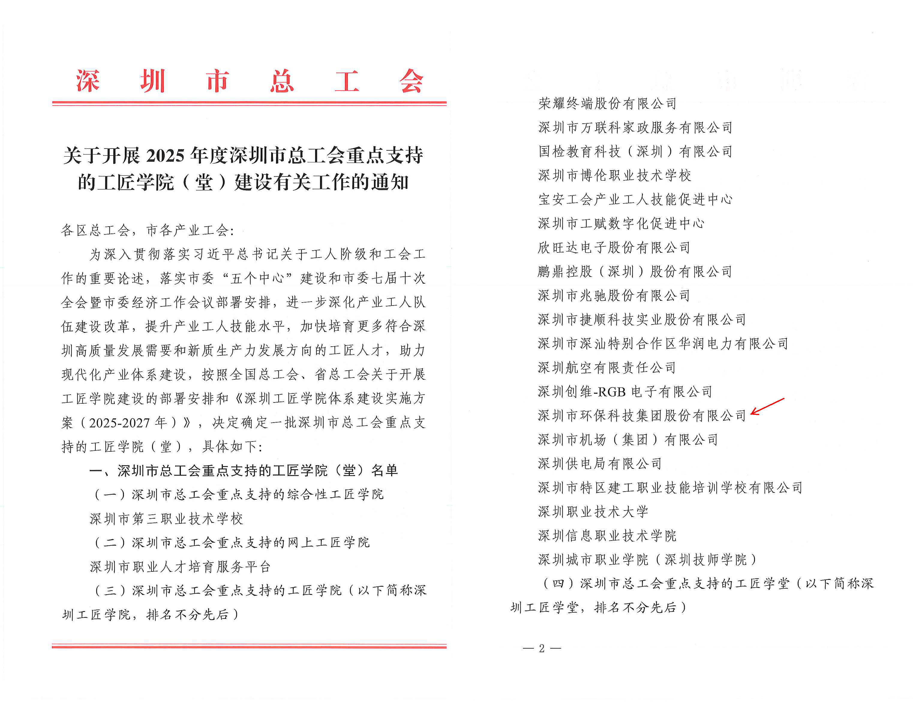 深圳市总工会为支撑深圳高质量发展,建设培养和储备更多高素质、高技能人才,建立了“1+50+N”深圳工匠学院体系。在投控公司相关部门支持和指导下,深环科技荣幸得与深圳知名企业、院校等20家机构获批深圳市总工会重点支持工匠学院(以下简称深圳工匠学院)。